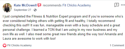 Since I was a child, I like to be active. Dancing, swimming, running are being my favorite things to do. I like to be in movement, which helps me to feel good; no matter if training with weights, walking on the treadmill, or a hot yoga class. The mind-body connection that you reach when you do a physical activity, it is something that I can’t describe – it is absolutely amazing. However, it wasn’t always like this. When my life became complicated and challenging during my early 20’s, I found myself on an unhealthy path, eating poorly and treating my body badly. After reaching a breaking point in my 30’s, I made the decision to take control and find the happy, confident life I was meant to live. I rediscovered my love for fitness and I decided to enroll in this wonderful program with FIT CHICKS Academy.